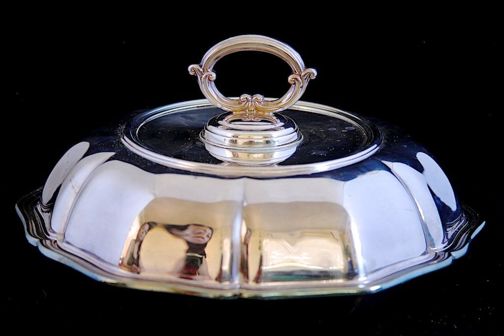 THIS IS THE VINTAGE SILVER PLATED SERVING DISH OR BOWL PATTERN WITH LID. THESE PIECE MEASURES APPROX. 9" IN DIAMETER. ; ABOUT 2" IN DEEP (NOT INCLUDED THE COVER, 4" IN HIGH INCLUDED THE COVER); ALMOST 2 LBS IN WEIGHT.